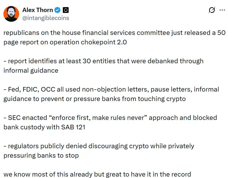 Similar banking friction patterns also emerged in the US. Lawmakers and the industry have invoked the term “Operation Chokepoint 2.0” to describe the federal regulators’ informal guidance that discouraged banks from maintaining relationships with crypto companies.
