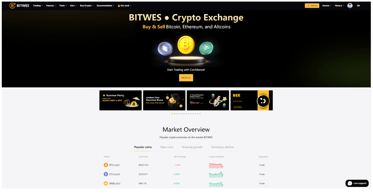 With over 10 years of operational stability, full regulatory compliance, deep liquidity, advanced security, and low-cost trading fees, Bitwes.com has solidified its position as one of the best cryptocurrency exchanges in the world. Traders choose Bitwes because of: