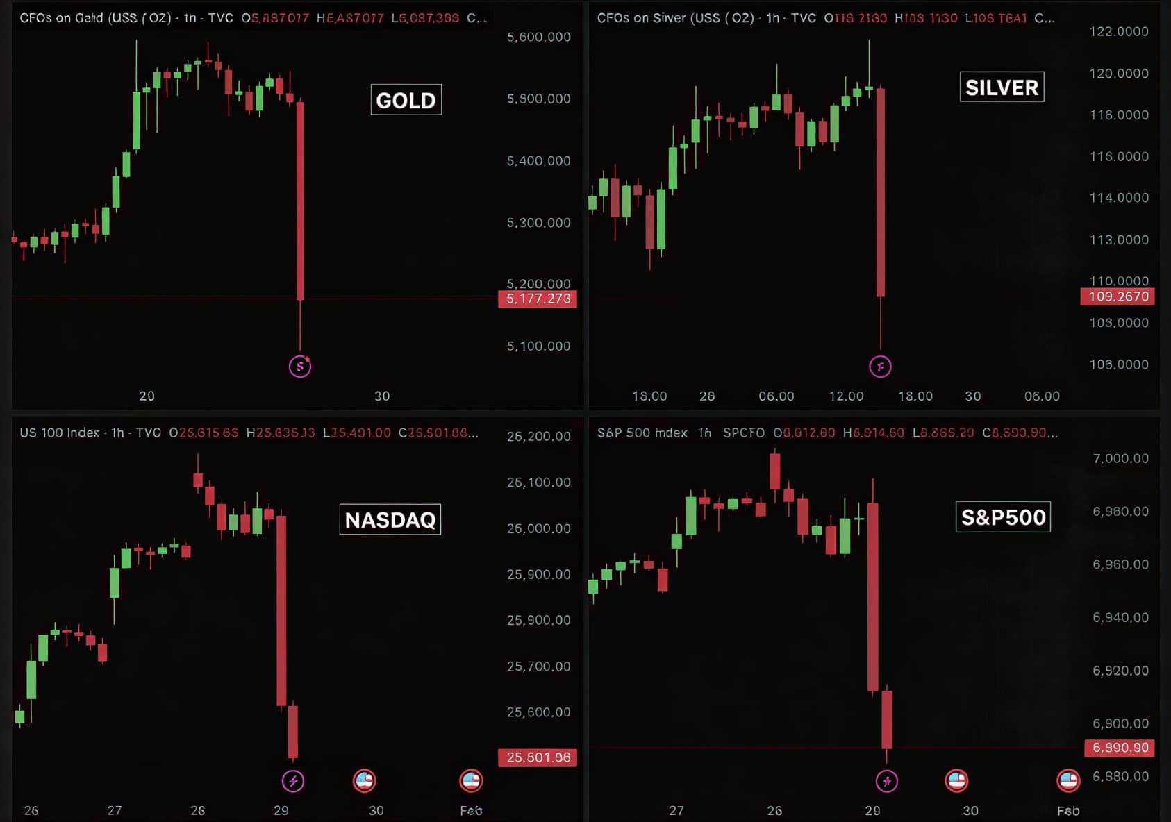 Global markets were hit by a violent sell-off within a single hour, erasing trillions of dollars in value across precious metals and U.S. equities. The abrupt move triggered sharp declines in gold and silver prices alongside heavy losses in major stock indices, signaling a rapid shift in risk sentiment. The scale and speed of the … Read more
