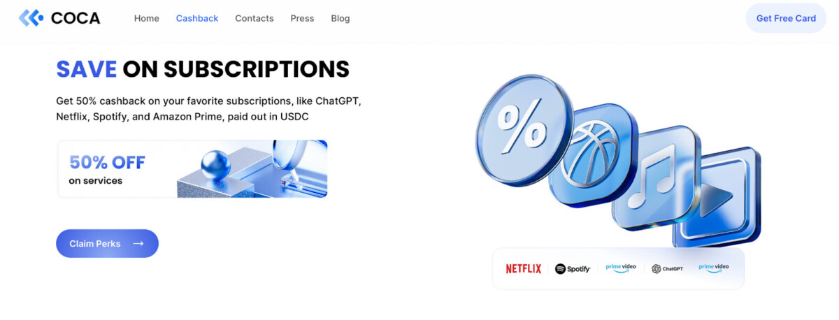 Other than everyday payments, COCA extends its utility to lifestyle benefits. Users receive 50% cashback on popular subscriptions like Netflix, Spotify, Amazon Prime and ChatGPT, along with discounts of up to 65% on hotel booking through COCA Travel, supplemented by additional cashback on stays. Funds held on the card can also earn up to 6% APY on stablecoin balances, with no lockups and full liquidity at all times.