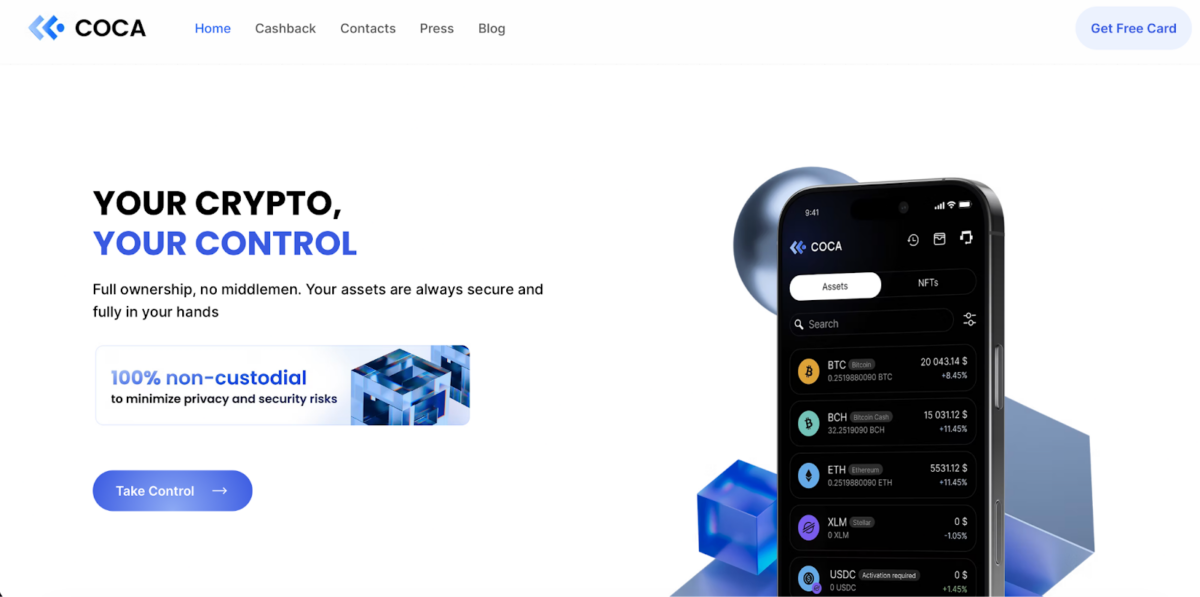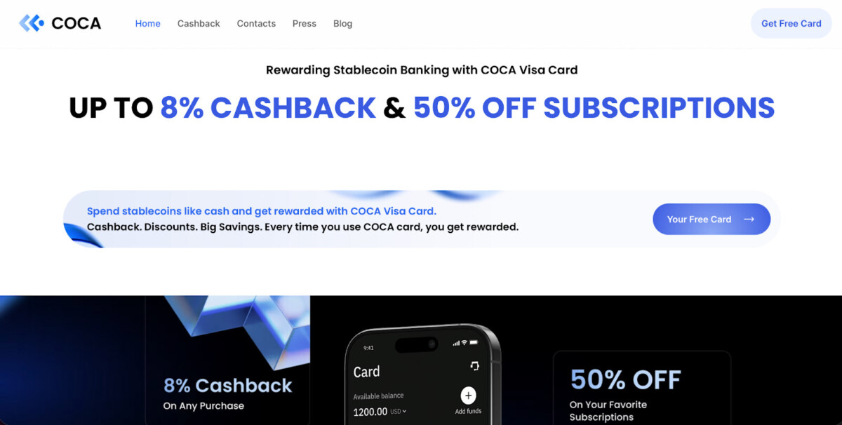 COCA offers a Visa-branded crypto card designed to make spending stablecoins as seamless and rewarding as spending cash at millions of merchants worldwide. Users can tap into everyday purchases and earn one of the most competitive reward rates in the space of up to 8% cashback paid directly in stablecoins (USDT, USDC or EURC). Unlike many competitors that reward users with native tokens or points, COCA’s cashback effectively removes exposure to volatility and can be used instantly. COCA’s crypto card is paired with a fully non-custodial wallet, meaning there’s no third party holding or managing their crypto all while providing one of the best stablecoin rewards structures.